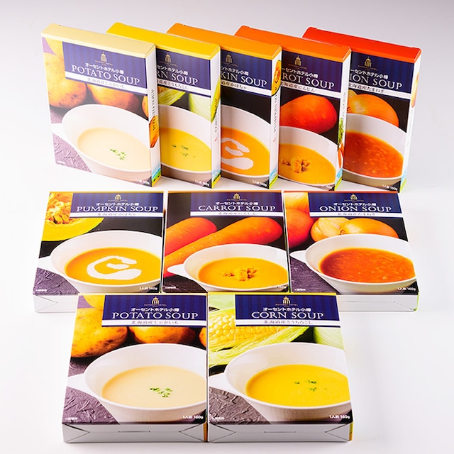 北海道産食材を使用したオーセントホテル小樽5種類のオリジナルスープを専用箱に詰め合わせました。 ご自宅用はもちろん、大切な方へのギフトにも喜ばれるスープセットです。 とうもろこし・かぼちゃ・じゃがいも・たまねぎ・にんじんの5種を、素材の旨みと風味を生かし、丁寧に仕上げた本格的な味わいをお楽しみいただけます。 ------------------------------------------- 北海道の大自然で育まれたとうもろこしを使用し、濃厚でコクのある味わいに仕上げました。 甘いとうもろこしの香りとまろやかな口当たりをお楽しみください。 内容量:1個(160g) 商品名:オーセントホテル小樽オリジナルレシピ「北海道産とうもろこしのスープ」 名称:コーンポタージュ 原材料名:コーンピューレー(国内製造)、牛乳、とうもろこし、クリーム、コンソメ粉末、砂糖、食塩/調味料(アミノ酸等)、(一部に小麦・乳成分・大豆・鶏肉・豚肉を含む) ------------------------------------------- 北海道のかぼちゃを使用した、かぼちゃの甘みが詰まった一杯。 自然豊かな北海道で育ったかぼちゃの甘みと風味を存分に味わえます。 内容量:1個(160g) 商品名:オーセントホテル小樽オリジナルレシピ「北海道産かぼちゃのスープ」 名称:パンプキンポタージュ 原材料名:かぼちゃペースト(北海道製造)、牛乳、濃縮乳、クリーム、玉葱ペースト、砂糖、コンソメ粉末、食塩、おろしにんにく/調味料(アミノ酸等)、(一部に小麦・乳成分・大豆・鶏肉・豚肉を含む) ------------------------------------------- 北海道の豊かな大地で育ったじゃがいもの風味豊かな濃厚でクリーミーなスープ。 ほっこりと温かさを感じる一品。 内容量:1個(160g) 商品名:オーセントホテル小樽オリジナルレシピ「北海道産じゃがいものスープ」 名称:ポテトポタージュ 原材料名:牛乳(生乳(北海道産))、濃縮乳、じゃがいもペースト、水あめ、プロセスチーズ、クリーム、ポークエキス、バター、チキンエキスパウダー、コンソメ粉末、食塩/調味料(アミノ酸等)、(一部に小麦・乳成分・大豆・鶏肉・豚肉を含む) ------------------------------------------- 北海道の豊かな大地で育ったたまねぎをじっくり煮込み、旨みと甘みを引き出したコクのあるスープに仕上げました。 たまねぎ本来のやさしい甘さと豊かな味わいをお楽しみください。 内容量:1個(160g) 商品名:オーセントホテル小樽オリジナルレシピ「北海道産たまねぎのスープ」 名称:ポテトポタージュ 原材料名:オニオンソテー(北海道製造)、バター、コンソメ粉末、オニオンパウダー、植物油脂、ガストリックソース、黒胡椒、食塩、ローレルパウダー/調味料(有機酸等)、(一部に小麦・乳成分・大豆・鶏肉・豚肉を含む) ------------------------------------------- 北海道の肥沃な大地で育まれた人参を丁寧に煮込み、素材本来の甘みを存分に引き出しました。 北海道産の牛乳やバターで仕上げた濃厚でクリーミーな味わいをお楽しみください。 内容量:1個(160g) 商品名:オーセントホテル小樽オリジナルレシピ「北海道産にんじんのスープ」 名称:キャロットポタージュ 原材料名:人参ペースト(北海道製造)、牛乳、オニオンソテー、濃縮乳、バター、水あめ、砂糖、じゃがいもペースト、小麦粉、コンソメ粉末、ガストリックソース、食塩、白胡椒/調味料(アミノ酸等)、(一部に小麦・乳成分・大豆・鶏肉・豚肉を含む) ------------------------------------------- 内容量:160g×5袋(計800g) 賞味期限:発送日+60日以上の商品を出荷 発送:ご注文確定後4~7日後に発送予定 発送方法:常温でお届けいたします。 ※冷凍商品との同梱はできかねます。(別途送料が発生します。) 殺菌方法 気密性容器に密封し、加圧過熱殺菌 調理方法 パッケージ裏面に記載の方法で、電子レンジまたは湯せんで温めてください。 保存方法 直射日光を避け、常温で保存してください。 販売者 オーセントホテルズ株式会社 北海道小樽市稲穂2丁目15番1号 製造所 総菜開発株式会社 米里工場 札幌市白石区米里3条3丁目5-27