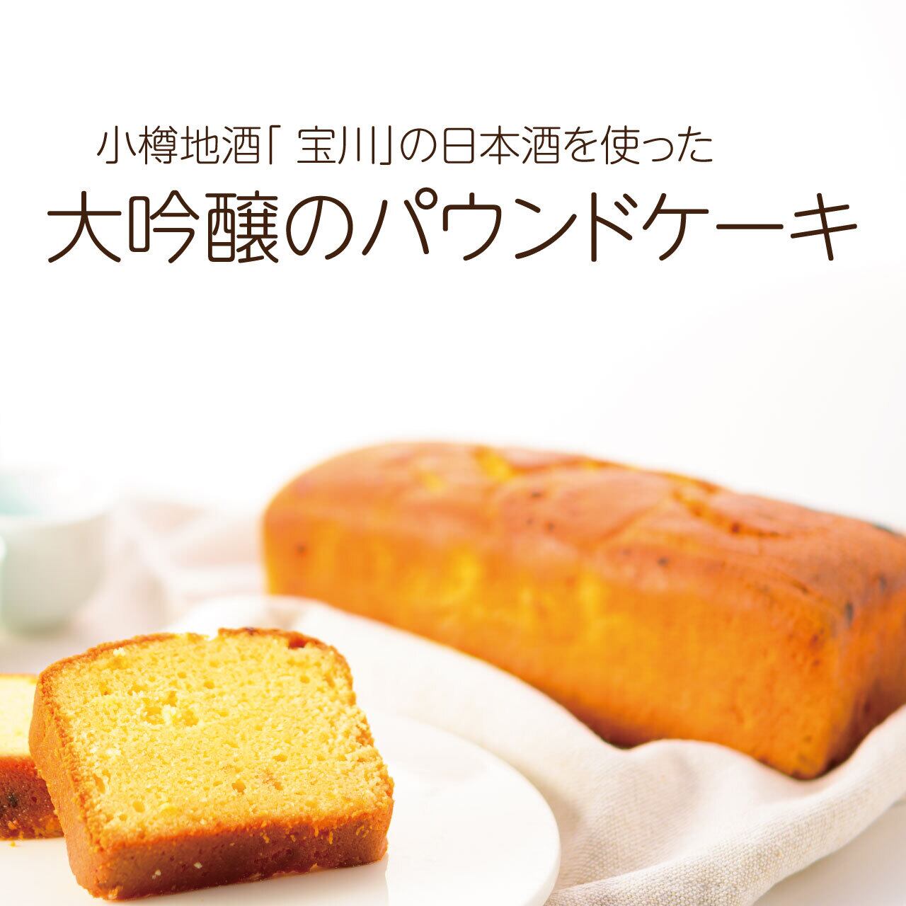 古き良き風情を残した街、小樽市の地酒「純米大吟醸酒 宝川」を贅沢に使用した、日本酒のパウンドケーキです。