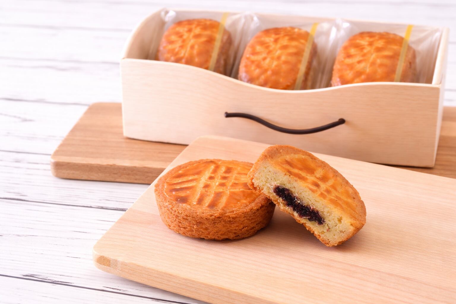 北海道の果実ハスカップのジャムがたっぷり入った「ハスカップガレット」を贅沢な木箱のギフトボックスに詰めてご用意しました。