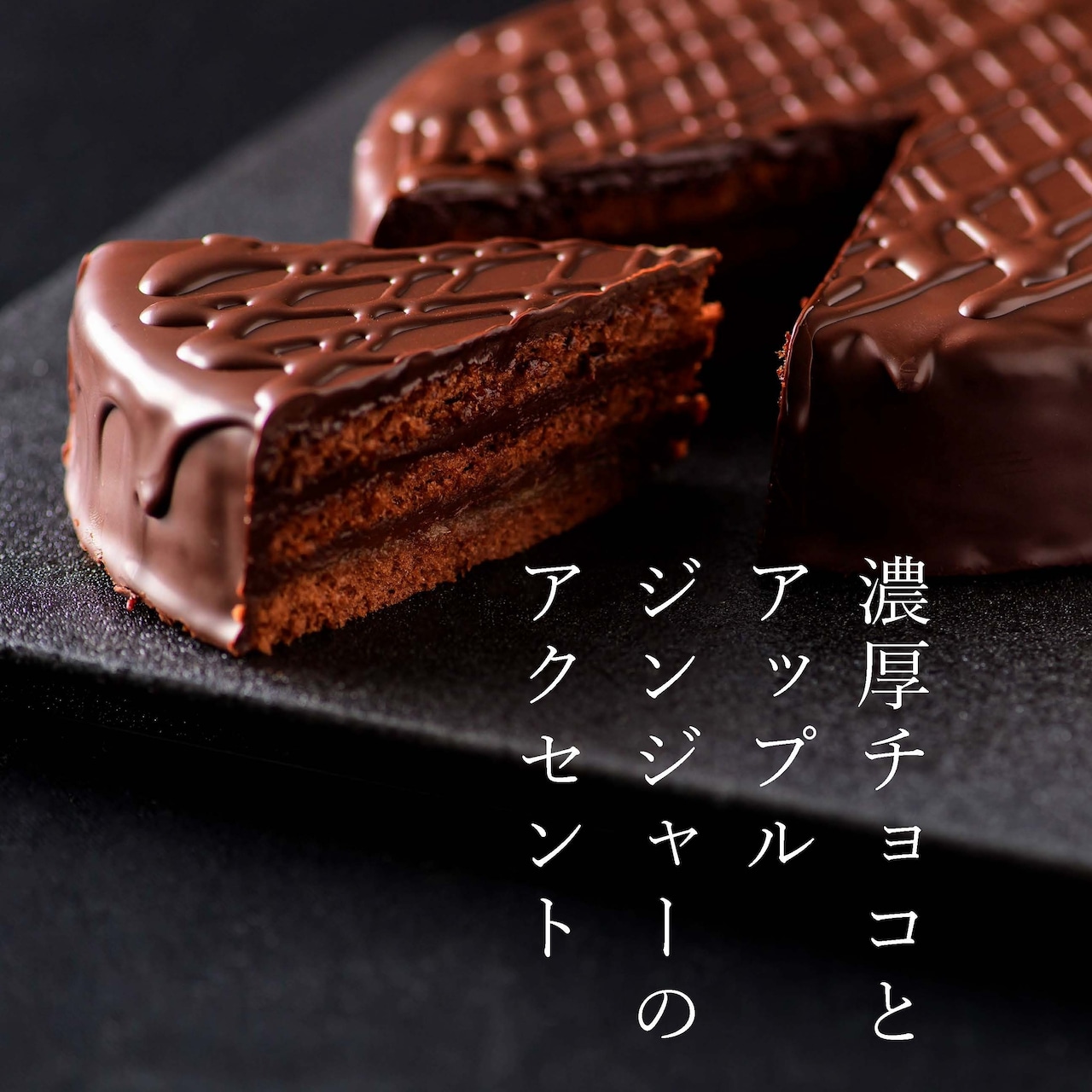 濃厚なチョコレートを贅沢に使用し、オリジナルアップルジンジャージャムをサンドした新しい味わいのザッハトルテです。