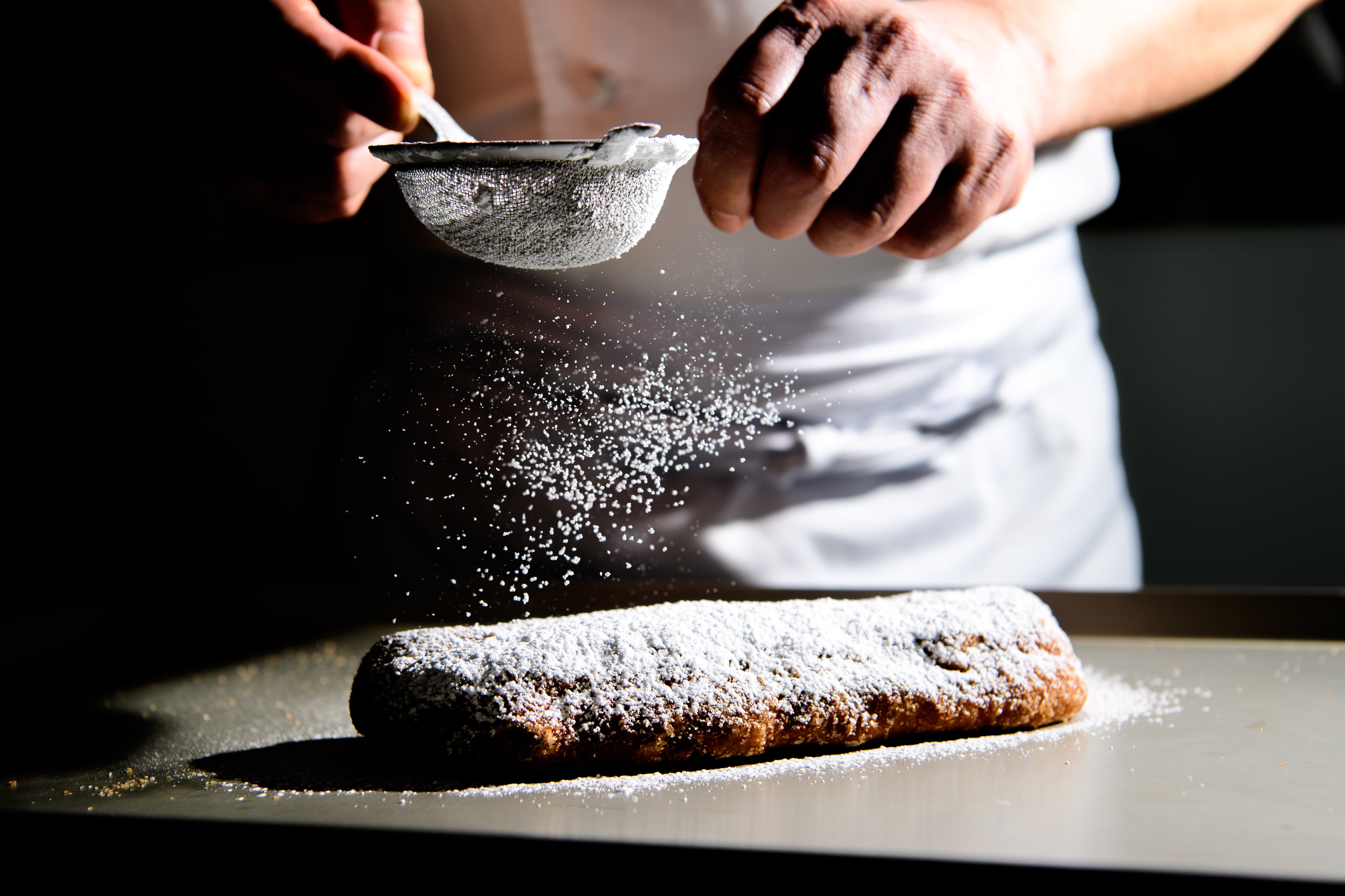 小麦粉、卵、上白糖、発酵バター、オレンジ、サワークリーム、トレハロース、ピスタチオナッツ、グランマルニエ、ベーキングパウダー、粉糖 、コワントロー