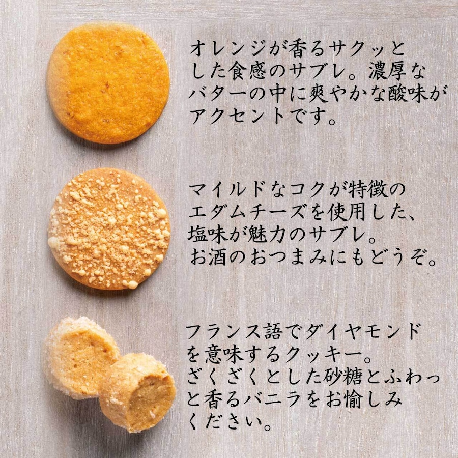 小麦粉(北海道産)、バター(国内製造)、グラニュー糖、エダムチーズ、全卵、食塩/チーズ香料(一部に小麦・卵・乳成分を含む)